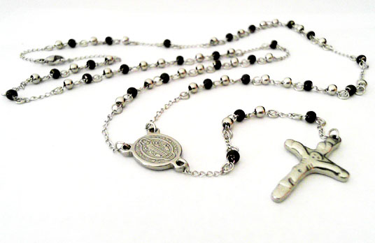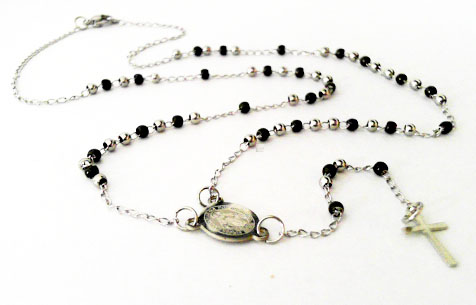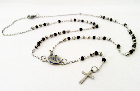 CA-12-274 ROSARIO DE ACERO CON PERLITAS NEGRAS